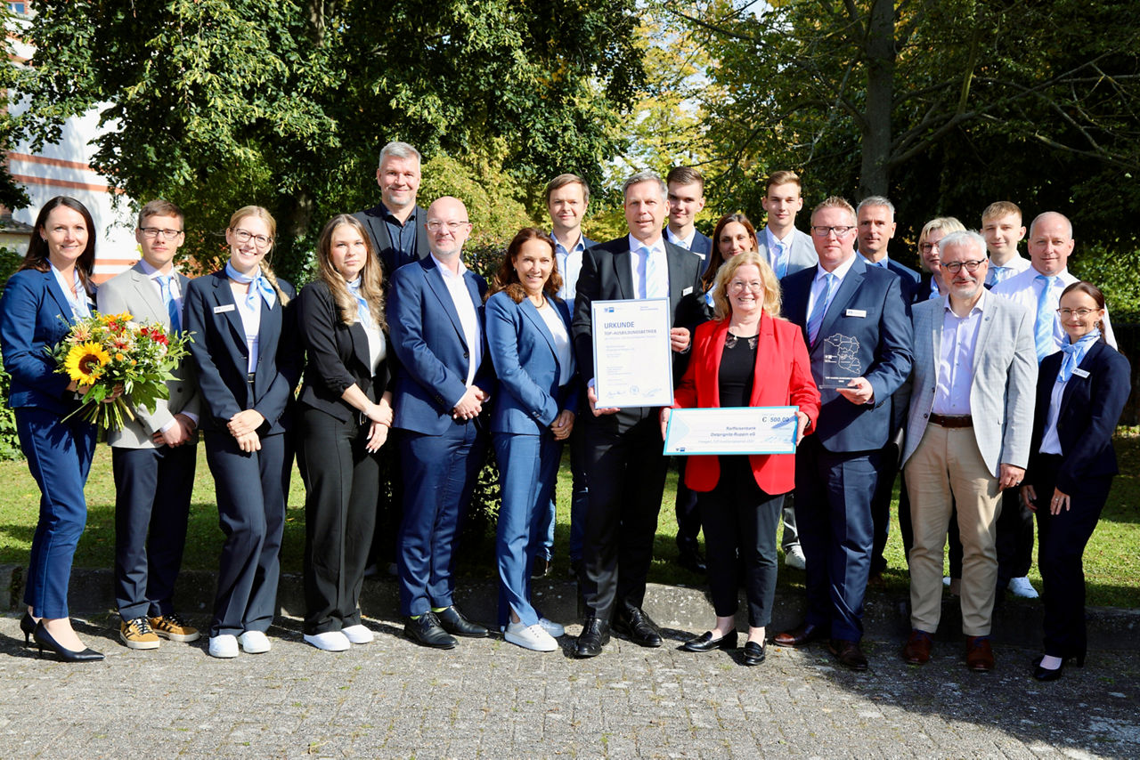 IHK-Präsidentin Ina Hänsel überreichte den Vorstandsmitgliedern Thomas Gensch und Peter Brack, den Personal- und Ausbildungsverantwortlichen, Anja Gensch und Laura Hennings, und den Azubis, Pokal, Urkunde sowie ein Preisgeld zur Anerkennung als „TOP-Ausbildungsbetrieb“.